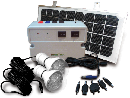 Lighting system for low cost and informal housing, remote villages and farming communities or outdoor recreational and emergency/stand-by lighting requirements. The system has a built in cell phone charger.